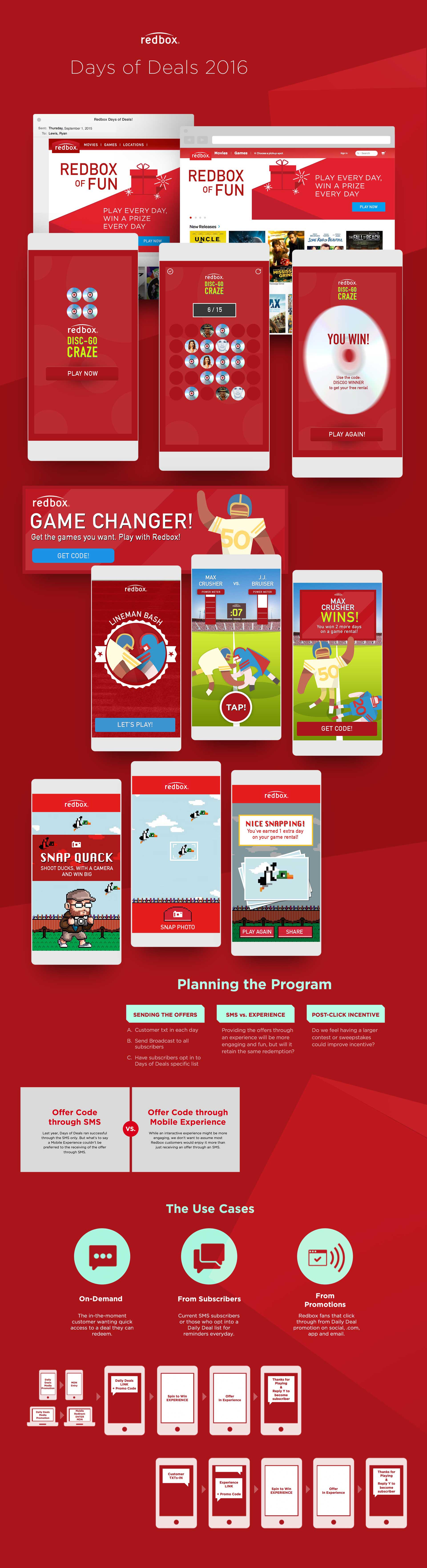 7 million. That is the active audience of Redbox. With today's many on-demand services it's logical to imagine the act of picking out a disc to rent is falling to the wayside like so many retail business models. However, you would be wrong. $1 gets you an HD film, and it's even less when you subscribe to their text alerts program. Redbox knew their advantage in the marketplace when they came to Vibes, but they knew how important the mobile connection had to be with their customers. The account, strategy, and creative teams came together to propose new programs for their mobile alert subscribers that would vary up the cadence of offers and transactional alerts, which built a stronger connection to Redbox as the source of fun and engagement.